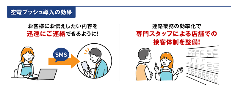 F氏:現在、系列店でもSMS送信サービスの導入を考えているという話を聞いています。当店で実感できたメリットや、工夫できるポイントを系列店にも伝えられるように、当店でも引き続き空電プッシュを積極的に活用できたらと思っています。