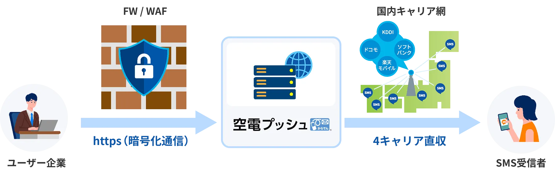 当社では無数の個人情報を扱うため、高い水準のセキュリティ対策が求められます。空電プッシュは国内の携帯キャリアに直接接続しており、携帯キャリア会社の判定機能なども含め、全て国内自社設備という安心感は大きいですね。